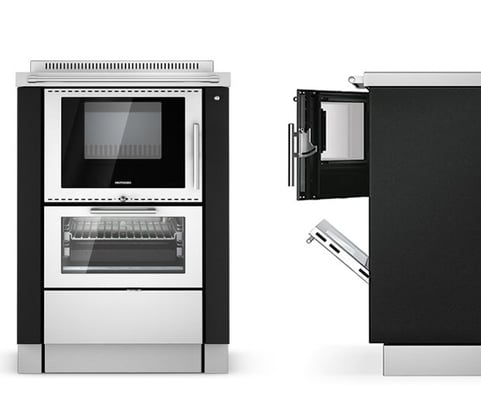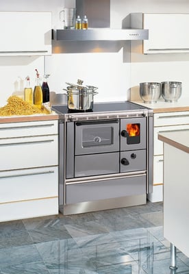 Ein moderner Holzherd verbindet Kochen, Backen und Heizen in einem System.