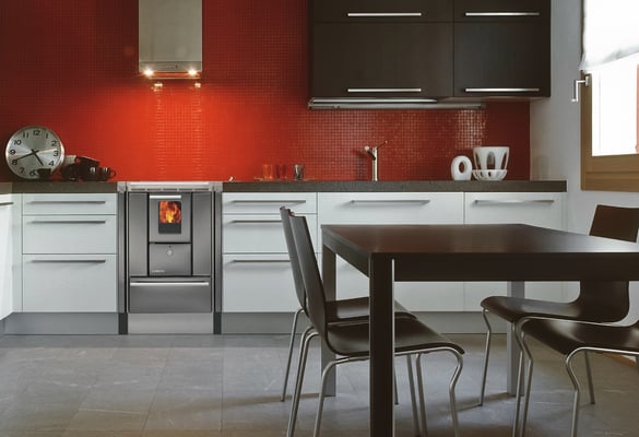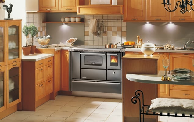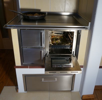 Der Holzherd kann sowohl in die Küchenzeile, als auch freistehend, in Ihrer Küche integriert werden.